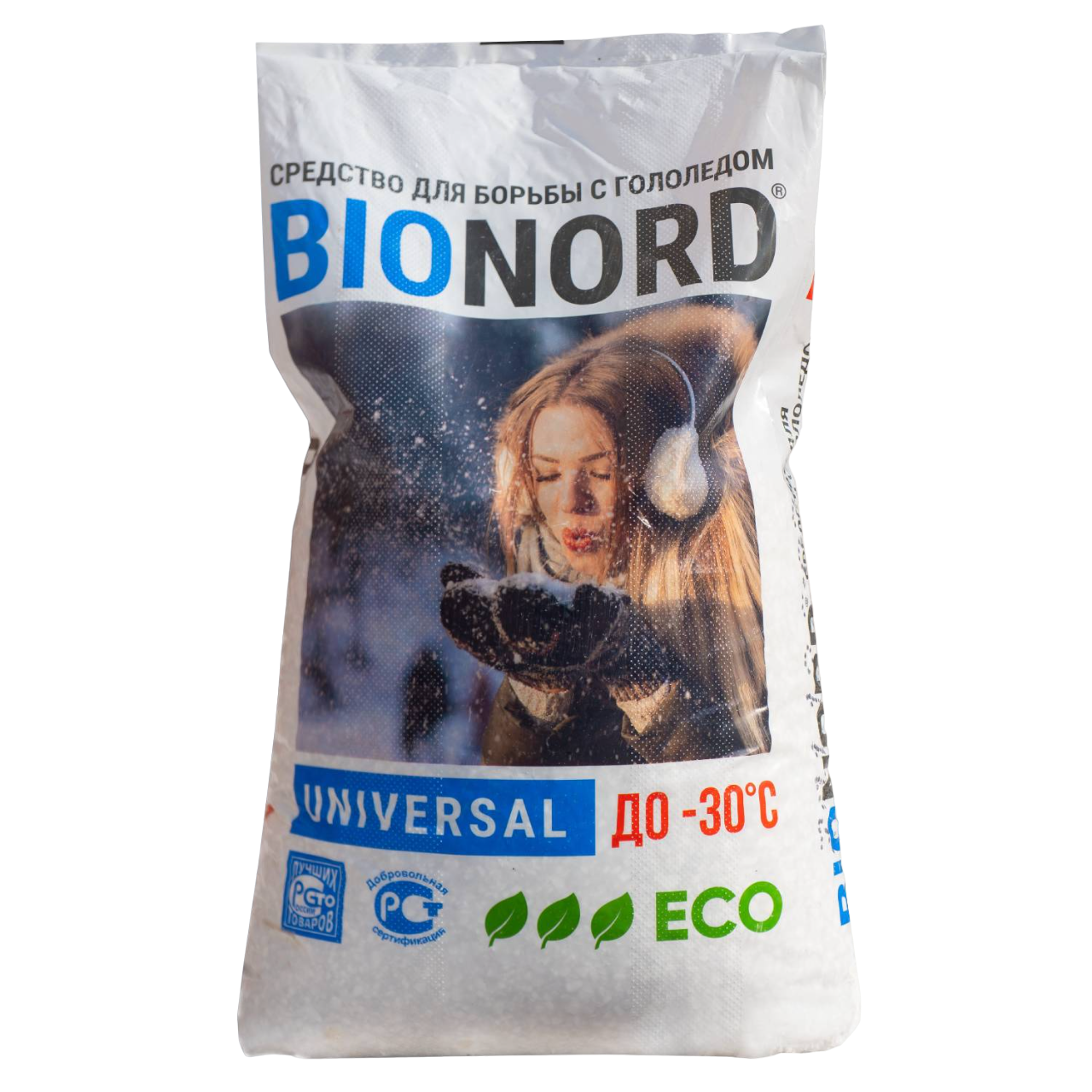 BIONORD PRO - средство для борьбы с гололедом, обеспечивающее надежную защиту дорожных покрытиях от обледенения. Благодаря оптимальному соотношению веществ в составе быстро и эффективно разрушает лед при температуре до –20 °C на дорогах, в дворовых проездах, на территориях коммерческих объектов и других поверхностях, не требующих деликатного ухода. Характеризуется повышенной плавящей способностью. Производство противогололедного материала осуществляется по передовой технологии «Единая гранула».
